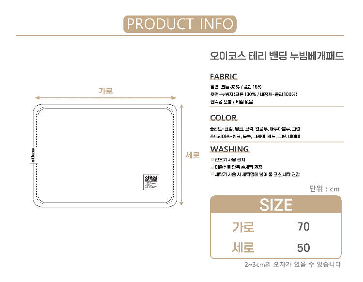 [오이코스] 테리 밴딩 누빔베개패드